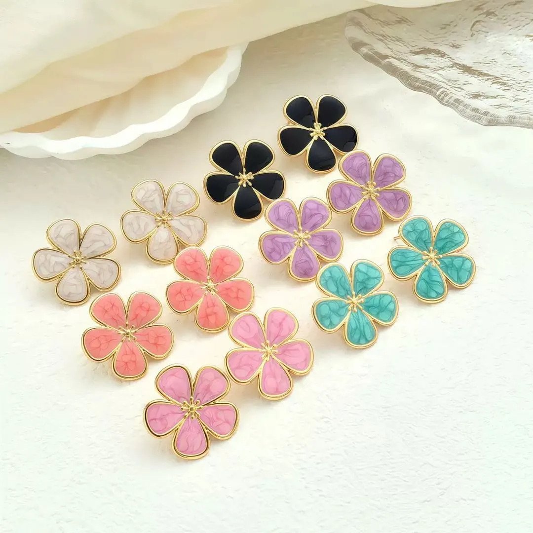 Vintage Emaille-Ohrringe mit Blumenmuster, farbenfrohe Ohrstecker mit zartem, öltropfendem Schmuck, auffällige Statement-Ohrringe mit großen Blütenblättern, elegante Accessoires für Partys, Abschlussbälle und Feiertage für Damen